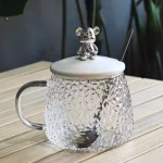 مج زجاج شفاف مج دبدوب بايركس حراري الوان متعددة سعه ٣٥٠ مللي بغطاء دبدوب ومعلقه