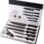 6 قطع من سكاكين المطبخ غير اللاصقة خفيفة الوزن مع مقبض مريح تتضمن سكين الشيف وسكين شرائح وقطاعة دقيقة وسكين تقشير ومقشرة خضروات ومقص