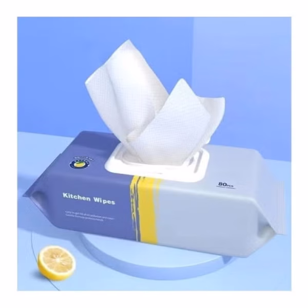 مناديل دهون مطبخ مبللة للاستعمال مرة واحدة 80 منديل- مناديل مطعم قوية لإزالة الشحوم والبقع الغذائية وتنظيف الطاولات الزجاجية المبللة