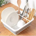 صفاية اطباق مع لوح تصريف، رف تجفيف اطباق قابل للطي والفتح طي لسهولة تخزين الاطباق، منظم اطباق محمول للمطبخ